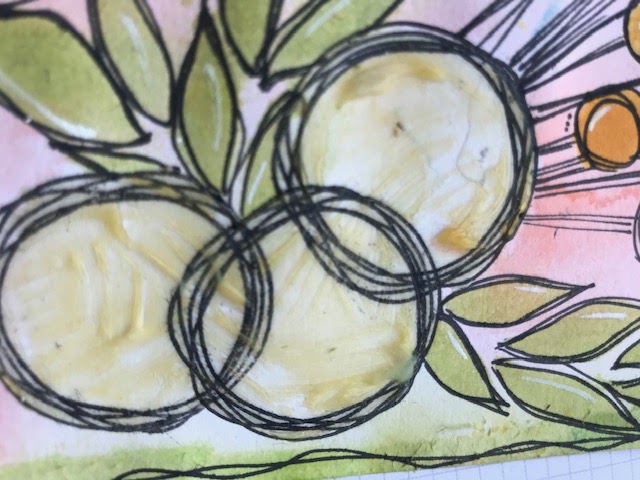 Out came my trust black pen for some outlining- quite roughly done, I didn't want it to be pristine.